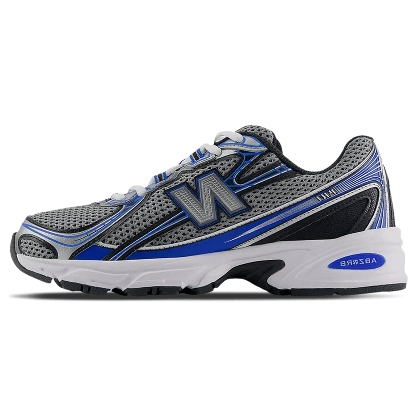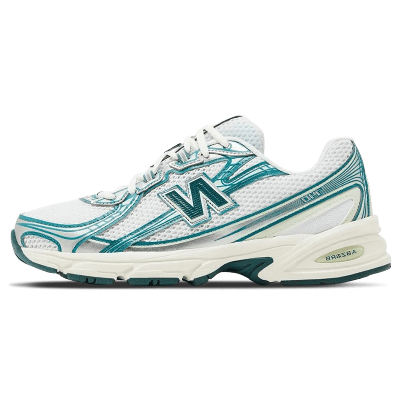 The New Balance 740v2 'White Silver Reflection' seamlessly blends early 2000s running aesthetics with modern performance technology. This model features an open knit mesh upper in a crisp white hue, complemented by synthetic metallic silver...